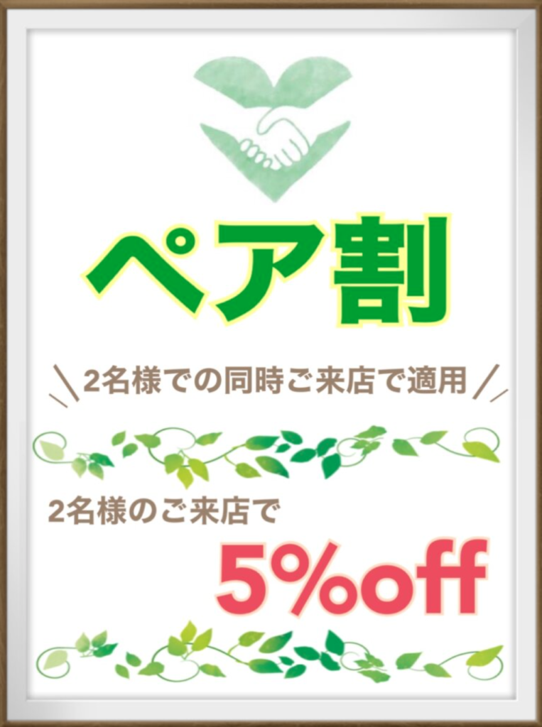 また、ご新規様からのお問い合わせでも、ご友人やご夫婦で一緒に通って受けたいと多くご依頼があり、折角であればお得に通って頂きたい!ということからこちらのクーポンを導入しております★